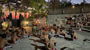 Ketika upacara keagamaan sedang berlangsung, suasana di Tanah Lot berubah semakin khidmat dan penuh makna. Ratusan umat Hindu Bali datang mengenakan pakaian adat serba putih dan membawa sesajen yang digunakan sebagai wujud persembahan jepada Sang Hyang Widhi. Wangi harum dupa memenuhi udara, sementara dentuman gamelan dan kidung-kidung doa menambah nuansa sakral yang menyelimuti pura. Walaupun selalu ramai oleh pengunjung lokal dan asing, suasana tetap terjaga karena semua orang menghormati kesucian tempat tersebut. Momen seperti ini yang memberikan pengalaman berbeda bagi wisatawan, di mana mereka bisa menyaksikan langsung perpaduan budaya, spiritualitas, dan keindahan alam Bali dalam satu tempat.